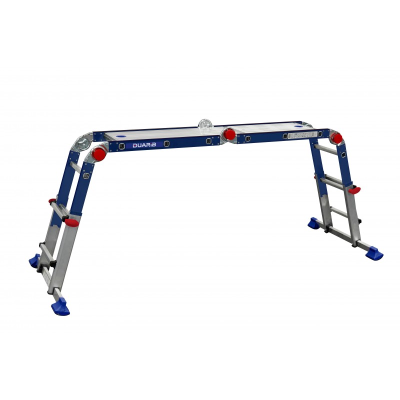 Blocage automatique des différentes positions d'utilisation. Réglage barreau par barreau de la hauteur. Encombrement plié ultra-réduit : les planchers se rangent au milieu du produit plié. Charge maximale d'utilisation 150 kg. Norme EN 131-4.