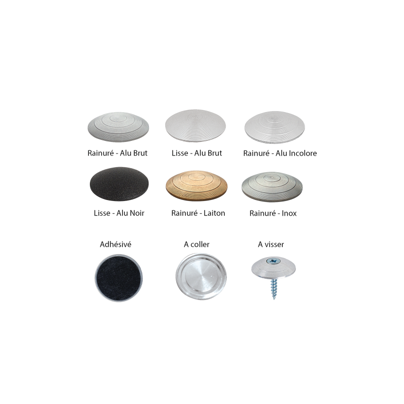 Clous métalliques de diverses natures de métal pour un rendu esthétique lors d'une pose de bande d'éveil à la vigilance pour personnes mal et non-voyantes.