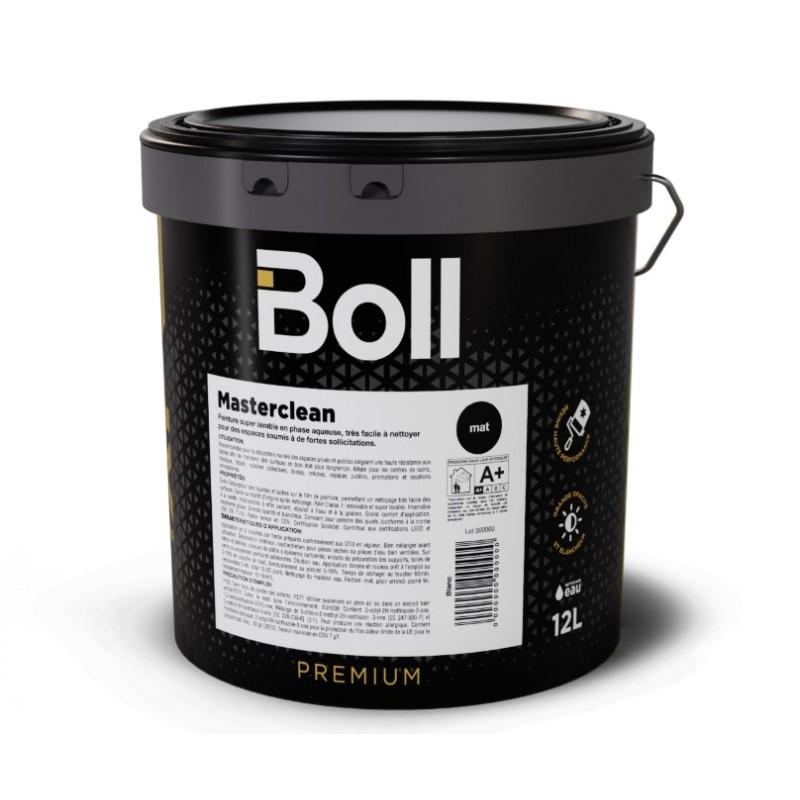 Peinture mate super lavable en phase aqueuse, très facile à nettoyer pour des espaces soumis à de fortes sollicitations.