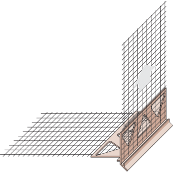 Profilés en PVC, associées à un treillis en fibre de verre de 100 / 100 mm, avec repère d'épaisseur d'enduit. Pour épaisseur d'enduit de 6, 10 ou 14 mm.